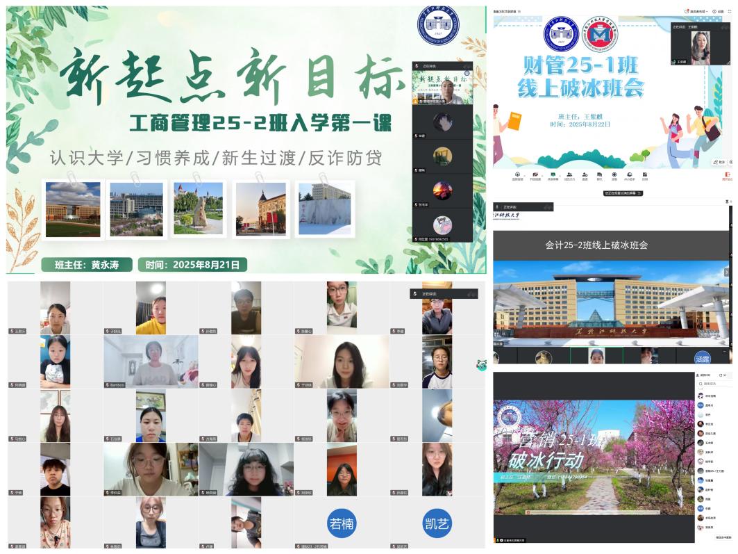 破冰预热联动,构建集体认同。8月21日至23日,16个新生班陆续开展“云端破冰”主题班会。班主任精心设计“名字接龙”“家乡风采秀”“兴趣图谱”等线上互动环节,借助屏幕共享、实时聊天等功能,有效促进新生之间的交流与相识。班会气氛轻松热烈,显著增强了班级凝聚力和新生的归属感。