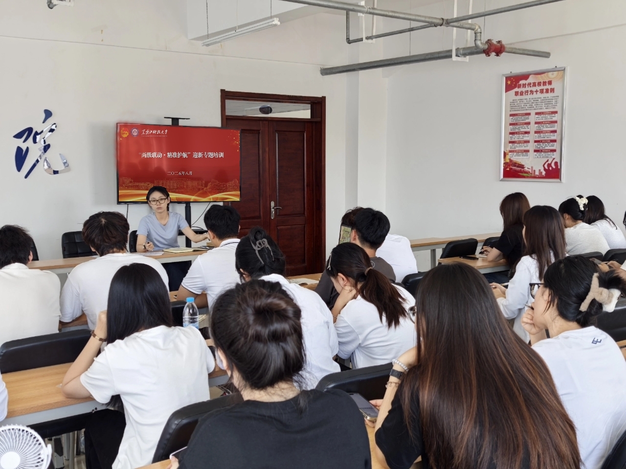 明晰班主任工作职责,夯实助学护航保障。为全面推进新学期班级管理与教育工作,学院组织召开了2025年秋季学期班主任工作部署会议。会议根据不同年级学生特点,分类明确了工作重点,新生班级侧重迎新报到、适应引导、学业规划与日常管理;老生班级重点关注学风建设、就业推进与思想动态把握,为新学期班级工作高效开展奠定坚实基础。