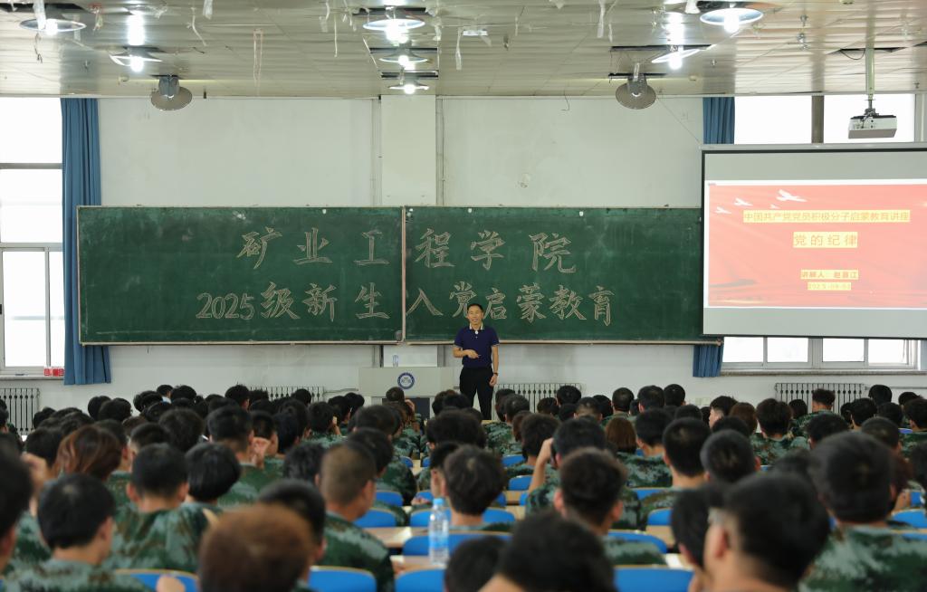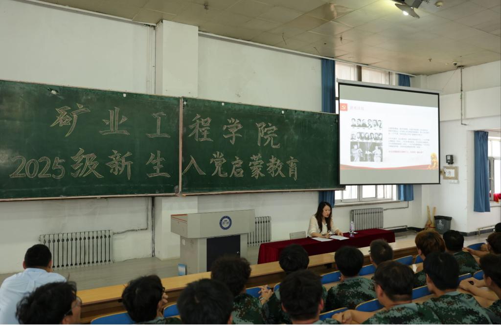 为引导新生树立远大理想,坚定理想信念,扣好人生第一粒扣子。9月3日下午,矿业工程学院在主楼EN0401开展2025级新生入党启蒙教育系列活动。本次教育活动邀请学校党委组织部副部长林松、学院党委书记赵喜江担任主讲嘉宾,学院2025级学生全体参加。