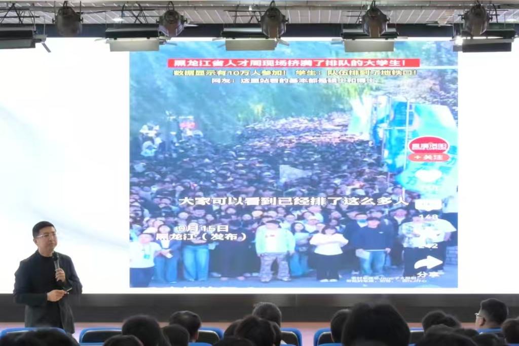 会上,刘维华以“当前严峻就业形势下,毕业生应做好哪些准备”为题,结合学校2026届毕业生就业意向调查问卷反映出的部分毕业生“就业目标不明确和就业技能不足”问题,给出毕业生要围绕明确职业价值观来“确立就业目标”和对标用人单位岗位需求来“提升就业技能”的建议,并通过实际案例讲解了简历撰写、面试技巧等实用内容。