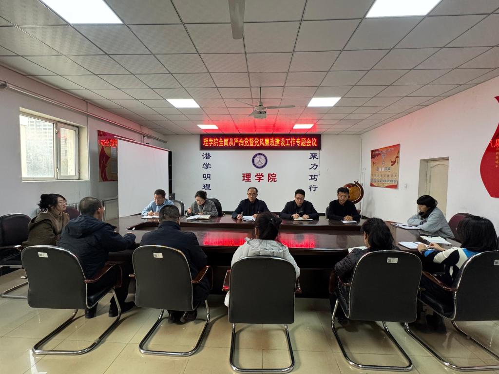 为深入学习贯彻党的二十届四中全会精神,全力推进全面从严治党和党风廉政建设工作,学院于11月5日在二楼会议室召开了全面从严治党暨党风廉政建设工作专题会议。学院领导班子成员、党支部书记、综合办、学工办人员参加会议,会议由党委书记贺龙军主持。