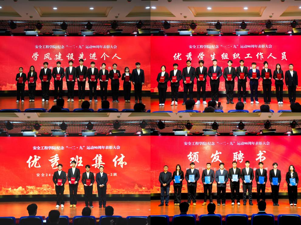 为纪念“一二·九”运动90周年,引领青年学生铭记历史、缅怀先烈,弘扬爱国主义精神,担负起新时代赋予青年的重要使命,12月7日,安全工程学院召开了“传承爱国志,奋进新征程”纪念“一二・九”运动90周年暨“先优”表彰大会。学院全体辅导员、学生组织主席团成员、全体受表彰先优代表及2025级全体新生参加了本次大会。
