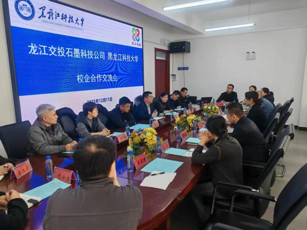 交流会上,苗雨对龙江交通石墨科技公司各位领导、专家的来访表示欢迎。她简要介绍了学院发展、学科特色及石墨领域技术储备与科研成果,强调环境与化工学院、矿业工程学院和材料科学与工程学院在石墨资源开发利用与新材料研发方面经验丰富,与石墨科技公司在石墨产业链上有很高的合作契合度。考察团高度认可三个学院的学科和专业优势,龙创新材料公司董事长杨帆介绍了拟投资金额26.79亿元建设的黑龙江省萝北县年处理200万吨石墨矿采选联合项目,以及石墨科技公司的未来产业布局、技术和人才需求。双方围绕石墨采选效率提升、高纯石墨加工、尾矿高效利用、新材料产业化以及共建现代产业学院、专业人才定制班和学科专业“十五五”规划等议题进行了深入研讨,达成合作共识,同意在党建联盟联建共建基础上进一步推进校企产学研融合和科技成果转化工作。