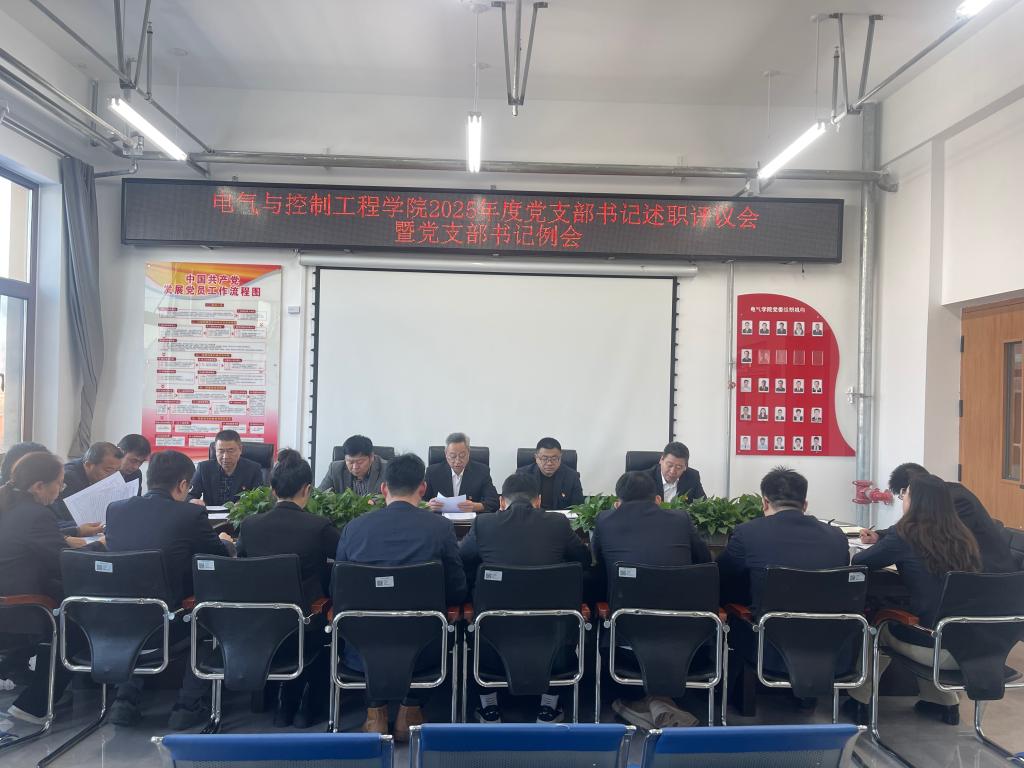 为深入学习贯彻落实党的二十届四中全会精神,夯实基层党建工作,推动学院党建工作提质增效,按照学校党委和学院工作安排,电气与控制工程学院12月26日召开了2025年度党支部书记述职评议会暨党支部书记例会。学院党委委员、15位教师、学生党支部书记参加了会议,会议由学院党委书记李鹏银主持。