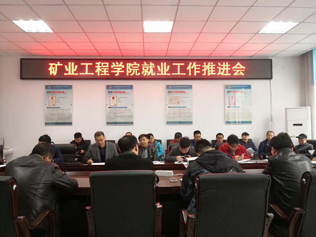 4月10日下午,矿业学院在学院一楼会议室召开了2018届毕业生就业工作推进会。学院党政领导、各教研室主任、全体辅导员及毕业班班主任参加了本次会议。会议由学院党委书记赵喜江主持。