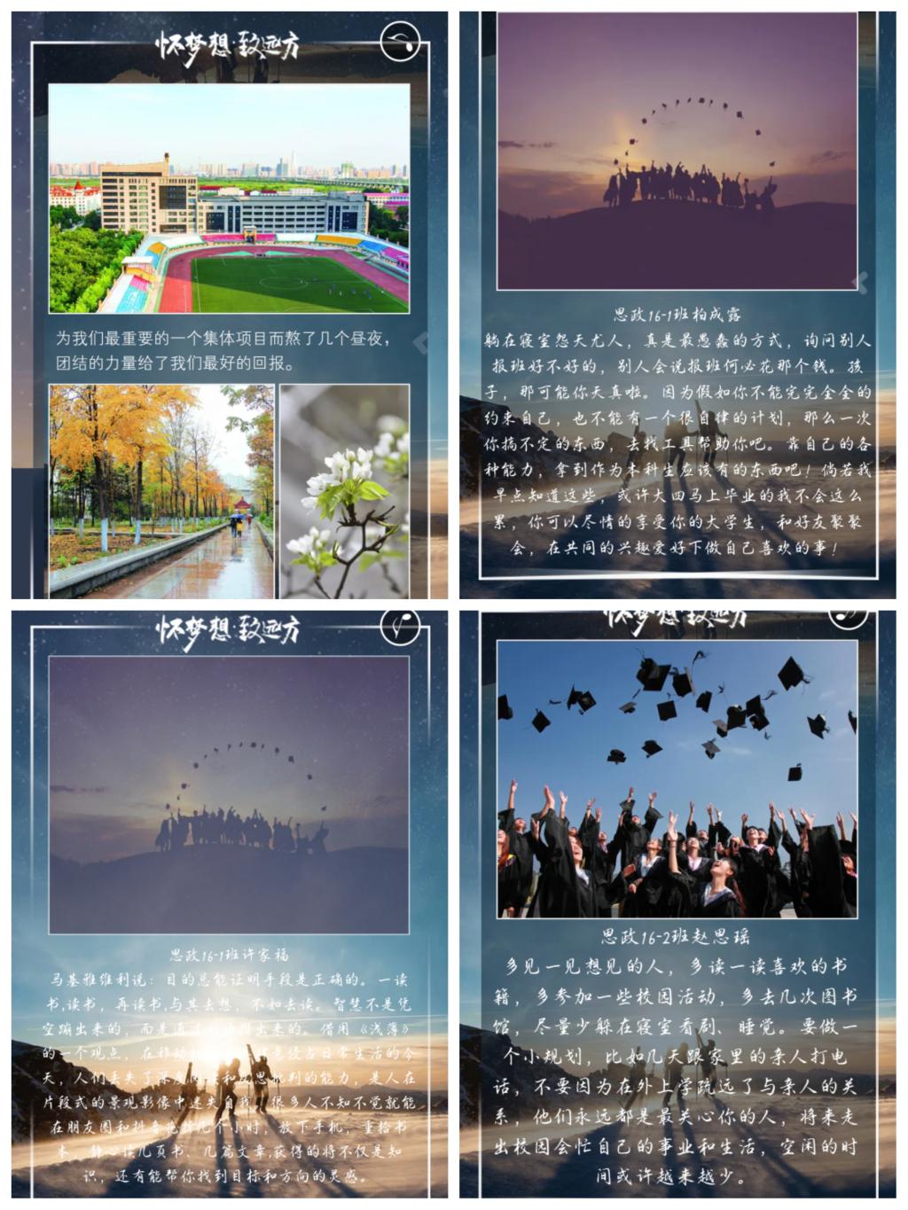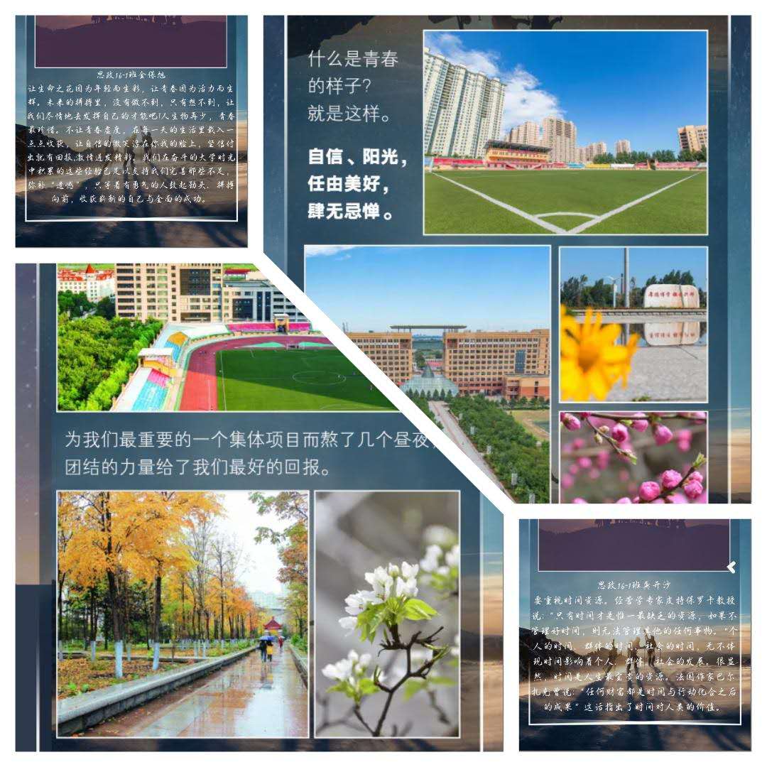 此次在毕业生中开展的“岁月无语 青春有言”活动极大的振奋了马克思主义学院全体毕业生的精气神,唤起了他们的爱校情、师生情、同学情。在他们的心得中,青春是多味的,青春是绚丽的,青春是美妙的。青春不仅是年轻的代名词,更是“美好的时光,珍贵的年华”的集合体。
