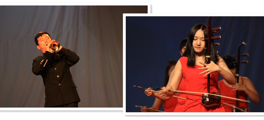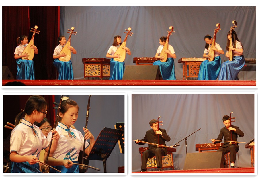 音乐会在民乐合奏《喜洋洋》中拉开帷幕。熟悉的旋律、精湛的演绎、喜庆的氛围瞬间点燃了全场的热情。琵琶、二胡、竹笛三重奏《神话》用民乐的形式演绎了凄美的爱情故事,悠扬婉转、如歌如泣,涤荡着现场观众的心灵。《老师我想你》、《送我一枝玫瑰花》、《战马奔腾》、《海恋》、《天山之春》等一首首由农大师生演绎的名曲让现场观众如痴如醉。一曲欢快的唢呐、板胡二重奏《好汉歌》把现场气氛推向高潮,赢得在场观众雷鸣般的掌声。最后,音乐会在10名身着红裙的二胡女演奏者合奏的的气势磅礴的《新赛马》中圆满结束,在场师生们沉浸在美妙的乐声中,久久回味。