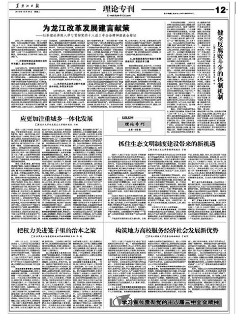 12月10日,黑龙江省委宣传部组织召开了全省社科理论界深入学习贯彻党的十八届三中全会精神座谈会。专家学者紧密结合我省改革发展实际,就贯彻落实党的十八届三中全会精神各抒己见、建言献策。乐鱼网站_乐鱼(中国)党委常委、宣传部(统战部)部长于成学参加了座谈会,并以《构筑地方高校服务经济社会发展新优势》为题作了发言,12月24日《黑龙江日报》予以全文刊发。现将全文转发,以便学习交流。