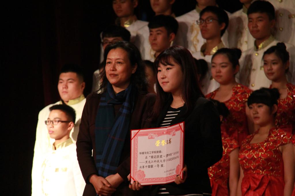 副校长陈桂芝为一等奖获得者环化学院颁奖
