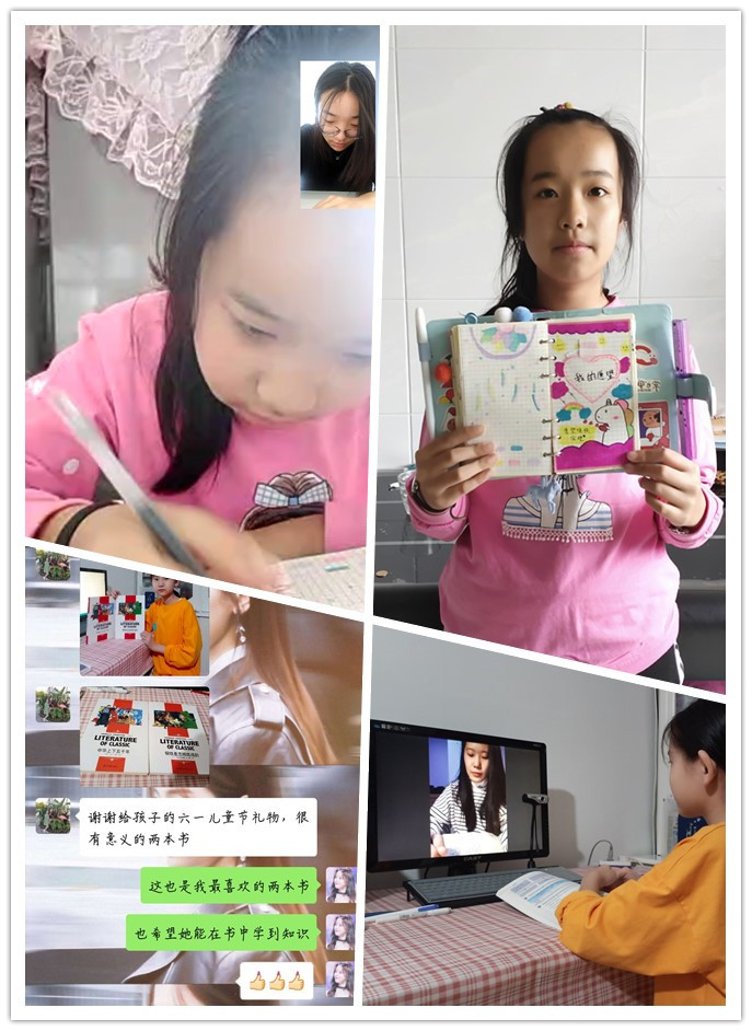 活动一经发出,就得到青年们的积极响应。建工学子给孩子们送上特殊的儿童节礼物,用满满的仪式感实现孩子们的六一微心愿。程管18-1班仇雯静同学在接到活动通知后,想起一直结对帮扶的丁予琪喜爱绘画并提起过想拥有一个手账本来记录生活中的美好瞬间,便为她邮寄了一个手账本和一盒水彩笔,帮助她实现了这个小小心愿。在六一儿童节当天,以互联网为媒介两人共同完成了“我的心愿”手账的绘制。风景19-1班曾慧瑶同学在六一儿童节到来之际,为父母不能长时间陪伴在身旁的于梦瑶小朋友奉献了自己的一份爱心。在了解到于梦瑶小朋友的最大愿望是希望有人能够辅导她的英语功课,曾慧瑶同学便利用自己的课余时间,耐心为她讲解英语学习知识点并在儿童节当天送上两本精美的图书,实现了孩子的“微心愿”,希望自己帮助的小朋友能在这两本书中获得属于自己的知识财富。