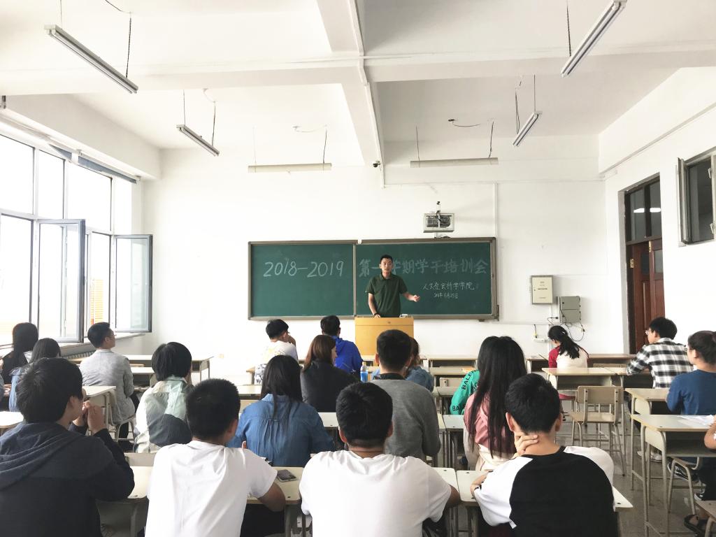 8月25日,人文学院在主楼E0512室召开了2018-2019学年第一学期学生干部培训会。人文学院副处级辅导员、学工办主任王伟强及全体辅导员出席了会议,学生分会、分团委主要学生干部以及各班级主要学生干部参加了会议。会上,王伟强为学生干部做了主题为“统一思想、提高认识,在新的学期有所作为”的培训。