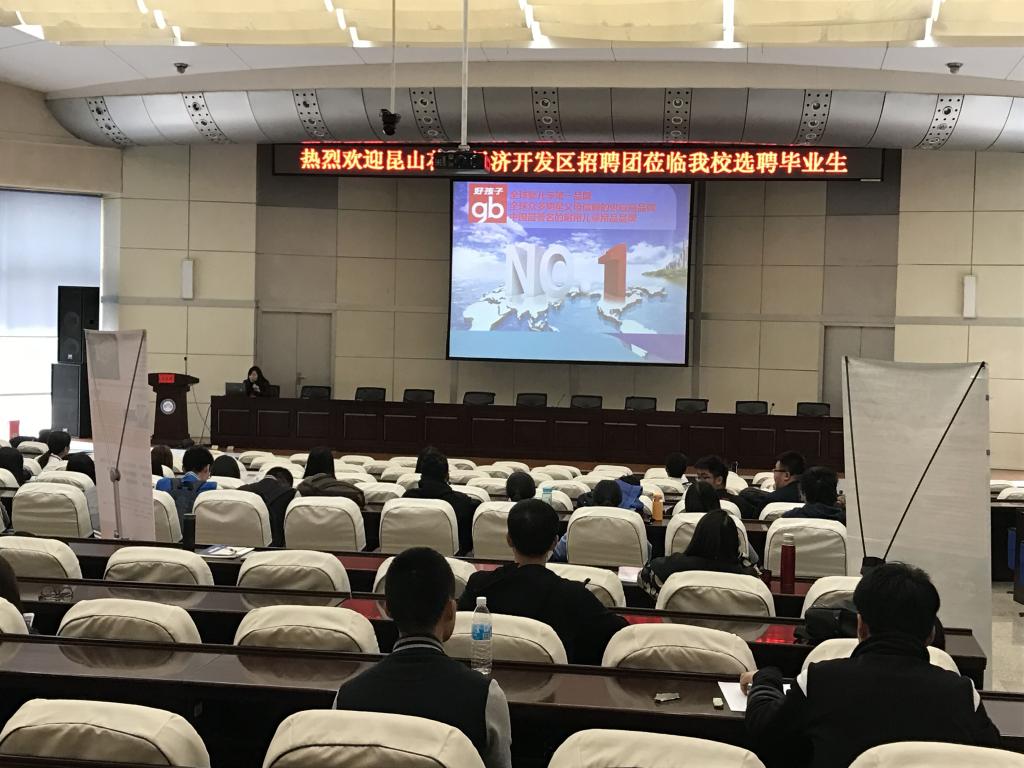4月24日上午,乐鱼网站_乐鱼(中国)在办公楼报告厅举办了江苏昆山市花桥经济开发区专场招聘活动。昆山市花桥经济开发区组织人事局王有军等一行3人带领9家知名企业参会。