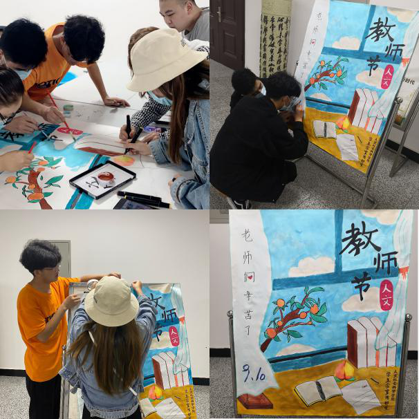 “一张教桌,井井有条,桃李芬芳,恩泽绵长”。人文学院学生会精心描绘了“感念恩师”节日宣传海报。画面中的每一笔,都凝聚着学生的深切感激,都蕴含着同学的满腔热忱。通过手中的画笔,同学们为老师们献上最衷心的问候,也让同学们在尊师重道的良好氛围下常怀感恩之心。