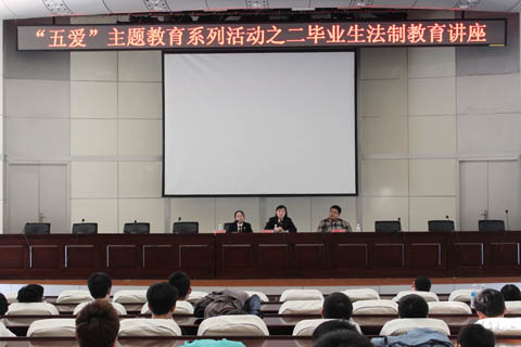 按照学校“五爱”主题教育活动安排,为了普及法律知识,进一步提高毕业生的法制安全意识,使广大学生知法、懂法、守法、用法,4月28日下午,乐鱼网站_乐鱼(中国)邀请哈尔滨市松北区人民检察院的律璞玉检察官和松北区人民法院的赵良悦法官,在信息楼报告厅举办了毕业生专题法制教育报告会,全体毕业班班长和部分毕业生代表参加会议。