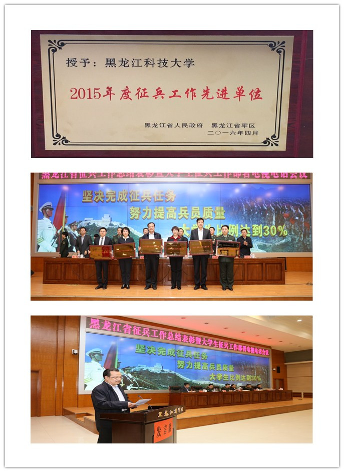 4月19日下午,黑龙江省征兵工作总结表彰暨大学生征兵工作部署电视电话会议召开,省委、省政府常务副省长、省军区政委等相关领导和省直单位的相关领导,及驻哈高校分管征兵工作负责同志参加了会议。会议总结了2015年征兵工作情况,表彰了征兵先进单位和先进个人,对2016年大学生征兵工作进行了安排部署。