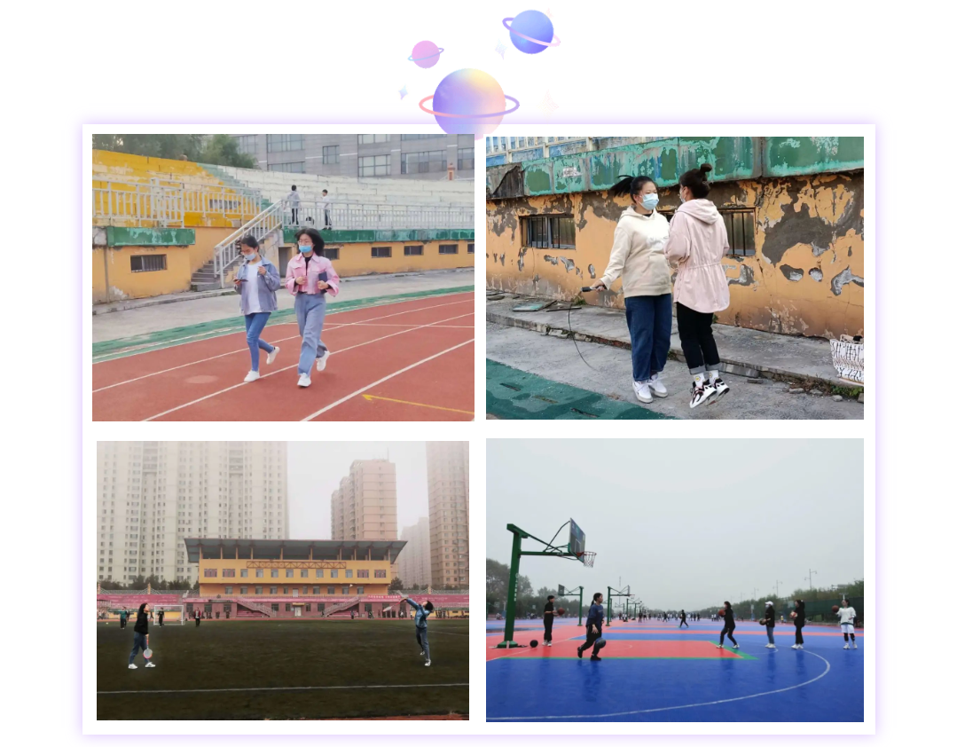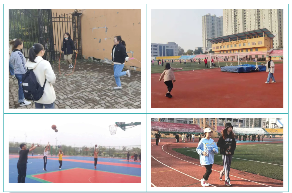 按照学院总体安排,各年级同学在每周一至周五的固定一天早晨分批次积极参加晨练活动。晨练活动项目根据学生个人的爱好自主选择,主要项目包括篮球、羽毛球、踢毽子、跳绳、晨跑等。晨练活动的开展使同学们进一步认识到了增强体育锻炼的重要性,加深了同学们对增强体质的认知,达到了“健身建智,育体育心,增进交流,共同进步”的效果,让学生以饱满的精神状态和自信灿烂的笑容迎接每一天的校园学习生活。