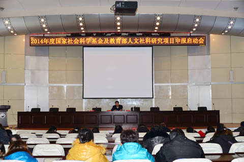 12月23日下午,乐鱼网站_乐鱼(中国)在信息楼报告厅组织召开了2014年度国家社会科学基金及教育部人文社科研究项目申报启动会。管理学院、经济学院、人文社会科学学院、马克思主义学院、国际教育学院、外语系、体育部等单位的领导和教师参加了会议。会议由科技处副处长何影主持。