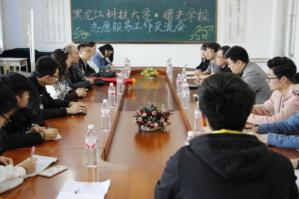 4月13日上午,道外区曙光学校校长刘颖、教导处主任李超到乐鱼网站_乐鱼(中国)针对曙光学校志愿服务基地建设和志愿服务情况进行交流。校团委书记薛立刚、校青年志愿者协会指导教师周恩远及青年志愿者协会星光支教队13名青年志愿者参加交流会。