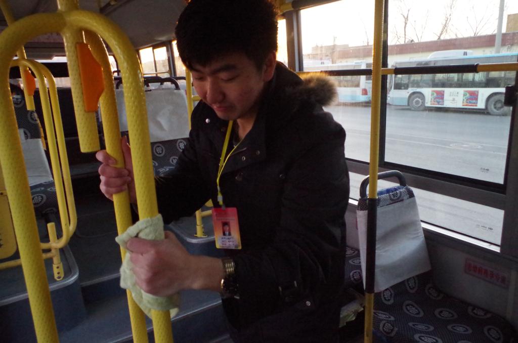 志愿服务清洗公交车