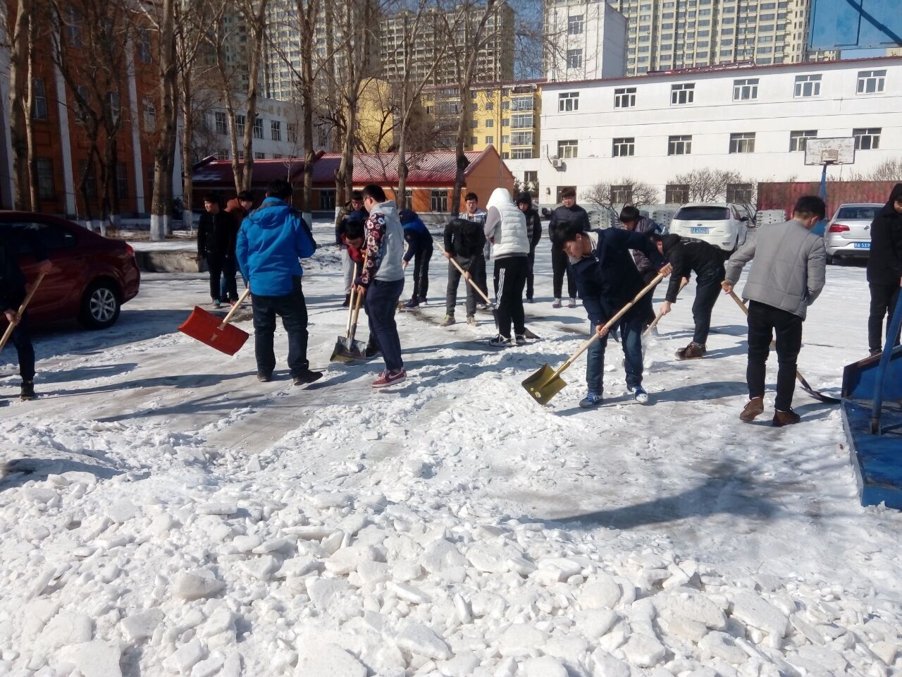 义务清扫校园冰雪
