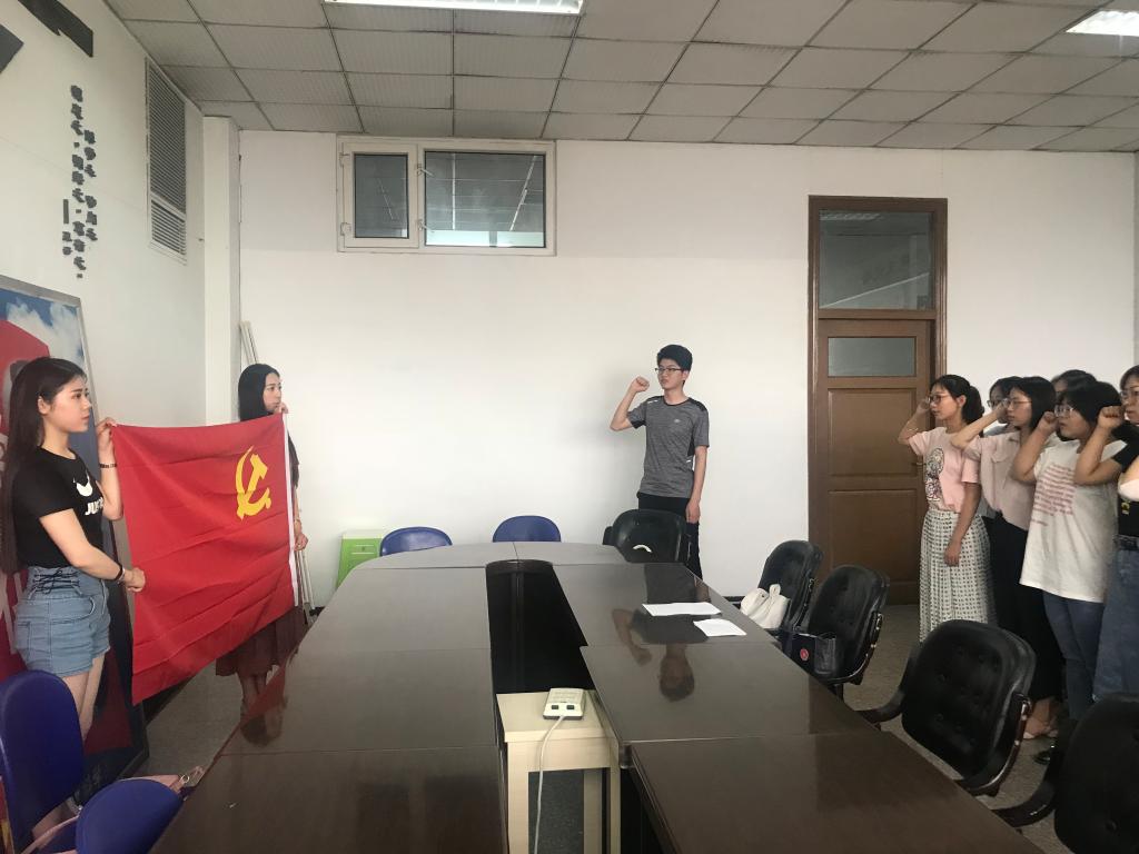 随后,学生党支部开展了重温入党志愿书、重温入党谈话、重温入党誓词的“三个重温”主题党日活动。已经考取北京工业大学研究生的毕业生党员代表竹鑫宇怀着当初入党时的真诚和激情宣读了自己的入党志愿书,带领毕业生党员回想起当年入党时的庄严承诺和奋斗决心。在重温入党谈话环节中,张建华院长、陈连军副院长和王伟强老师分别与毕业生党员谈话并希望他们牢固树立“四个意识”,坚定“四个自信”,以更加饱满的精神、更加突出的表现,践行对党的庄严承诺。最后,与会毕业生党员举起右拳,面对党旗庄严宣誓,重温入党誓词。