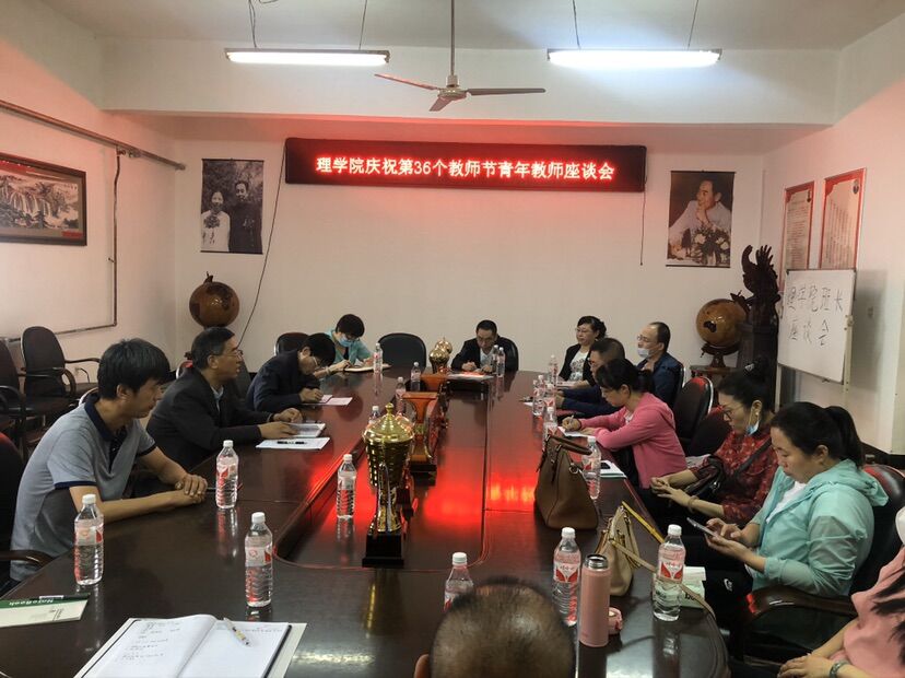 9月9日上午,理学院召开庆祝第36个教师节青年教师座谈会。会议由学院党委书记、院长王建国主持,副院长徐宝玉和系部主任参加了座谈会。
