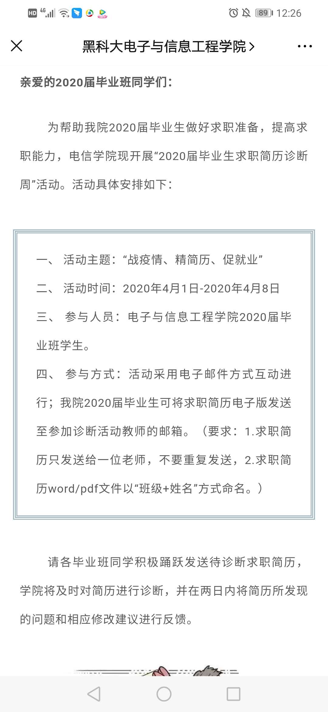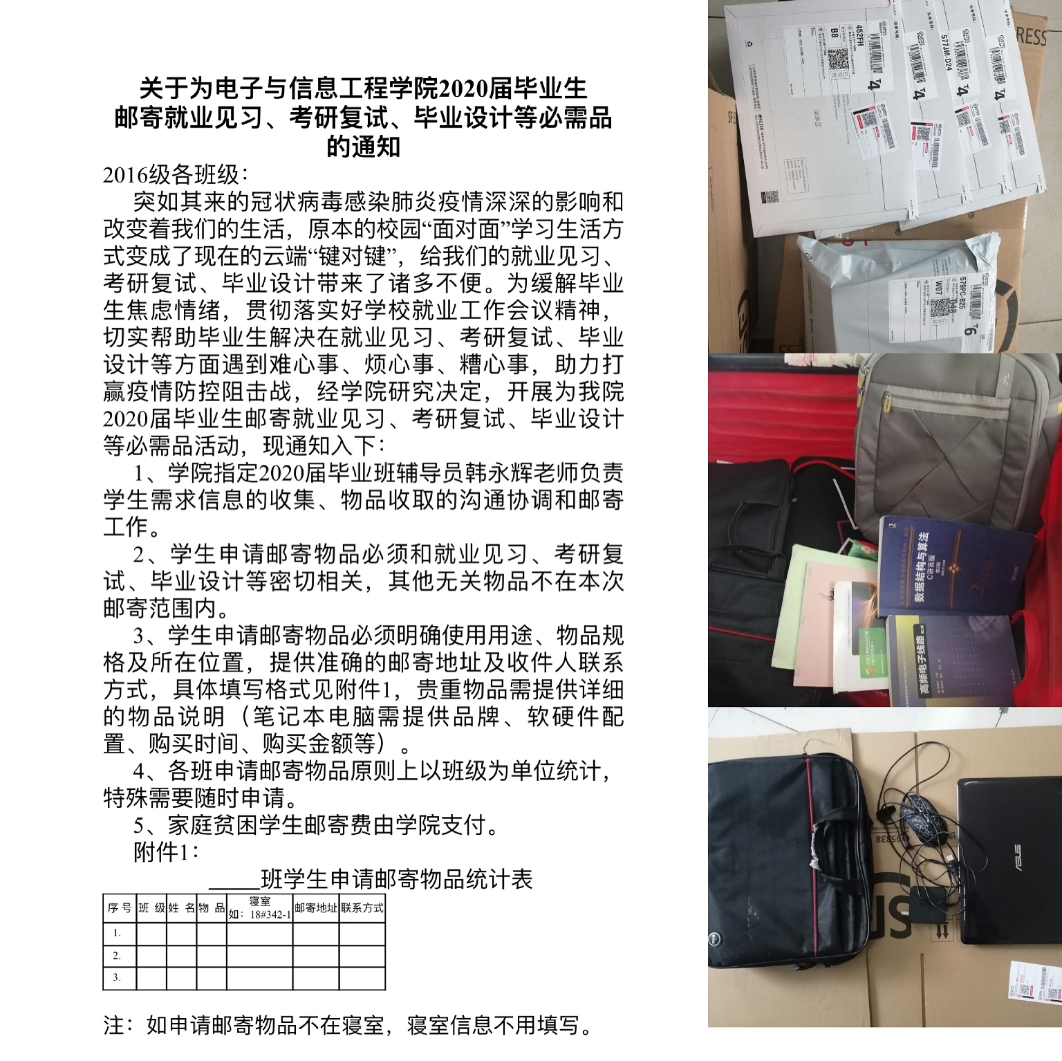 真心服务、下对“处方药”。一是围绕毕业生就业、复试准备所需资料“求其不得”的烦心事儿,在学生处大学生服务中心的大力帮助下,为毕业生邮寄考研复试书籍、笔记本电脑、成绩单、学籍证明、在校证明等各类材料,满足学生需求,舒缓焦虑情绪;二是立足毕业生“就业无门”的难心事,学院主动出击,先后与苏州科达科技、杭州小马教育科技等4家用人单位取得联系,先后为6名学生解决就业问题,2人达成就业实习意向,切实为学生解决就业问题,实现精准“销账”;三是对焦毕业生就业“屡战屡败”的闹心事儿,帮助学生分析其原因,调整期策略、降低望值、舒缓就业压力,增强求职动力和就业信心。