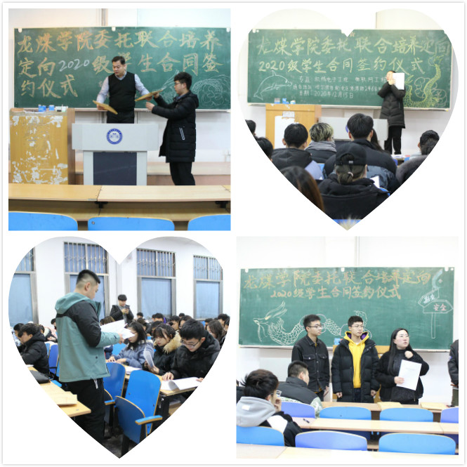 12月16日晚,龙煤学院在教学主楼西区一楼教室与2020级学生进行合同书签约仪式,学院党委副书记高明星,副院长张永利,班主任及学院2020级全体学生参加。