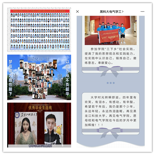 按照学校“青春激昂 逐梦起航”毕业生“十个一”主题教育活动要求,学院结合疫情期间工作实际,创新教育形式,丰富教育载体,细化教育内容,明确各项教育工作责任人,分片包干,确保各项教育工作取得实效。开展了留下一份谏言、抒发一段情感、分享一次经验、召开一次班会、“云”合影、组织一次党活、参加云端毕业典礼、观看云端毕业演出等等,全体毕业生通过云端表达了对乐鱼网站_乐鱼(中国)的感激之情。