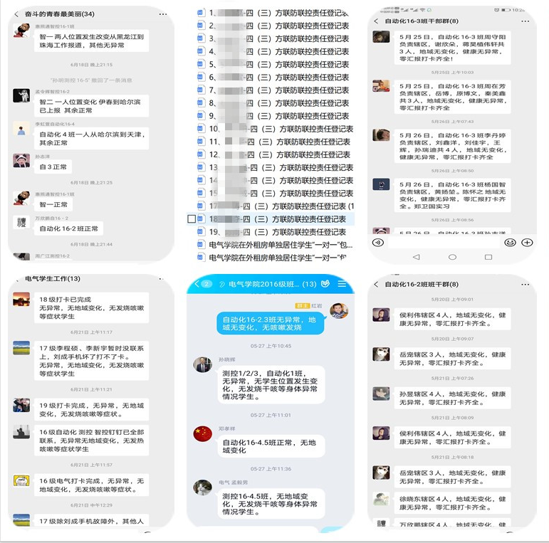 为确保毕业生身心健康,防疫不出问题,学院建立以年级、专业、班级、寝室为单位的“排查-报告-反馈”机制,对全院723名毕业生进行科学防控,精心精准核查信息,做到零差错零漏洞。毕业年级辅导员从钉钉打卡,到包保责任区点对点核查;从收集情况汇报,到对接班主任情况报告;从正常的答疑解惑,到心理问题学生的耐心疏导;从位置信息变更审批,到突发情况处理;从上情下达,到下情上传,始终做到对待学生耐心细致、防疫工作有条不紊。