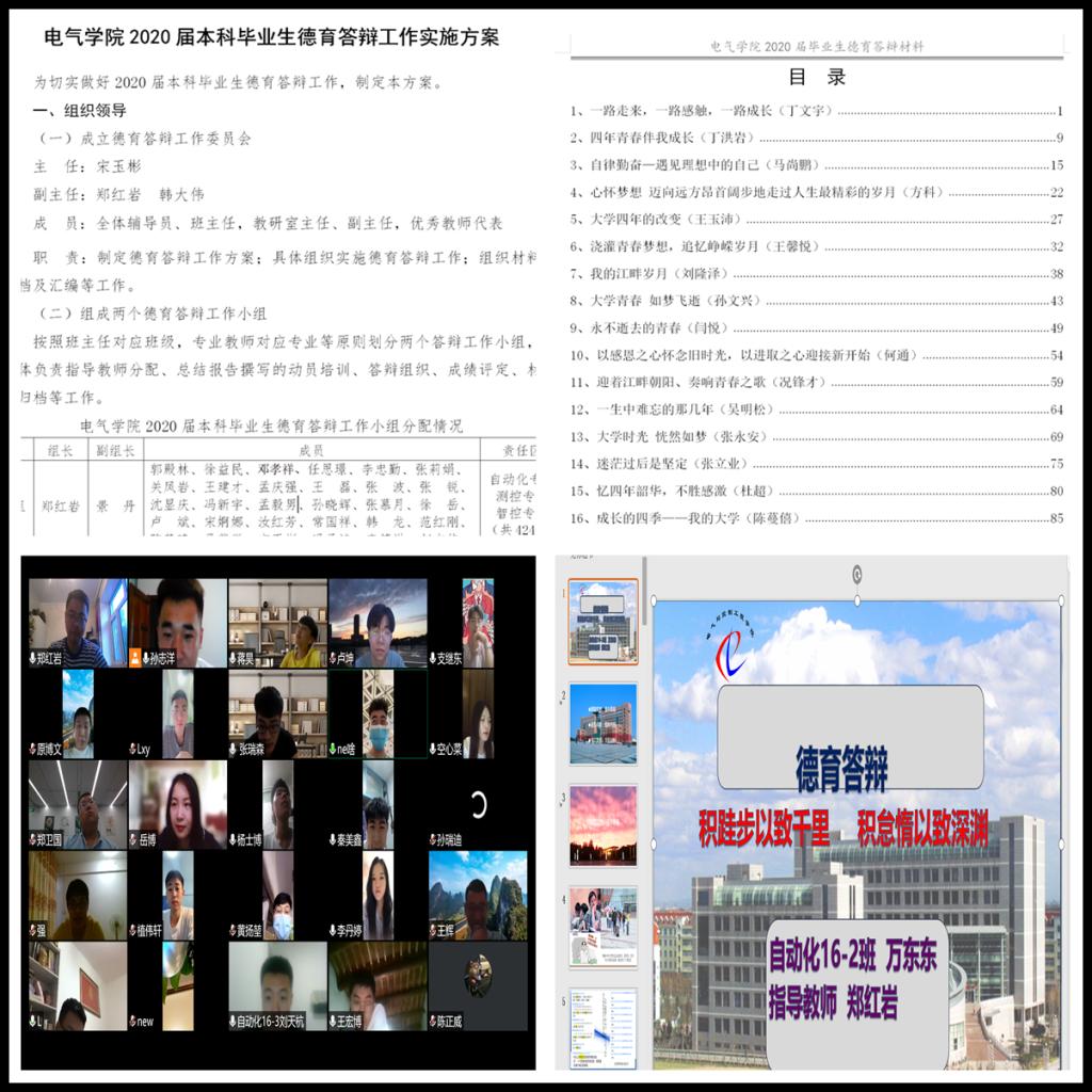 让德育教育响彻“云端”。结合疫情防控期间“停课不停教、停课不停学”、教育教学质量标准不降低、毕业就业时间不推后的总体要求,紧紧围绕毕业生开展了德育答辩工作。从方案的制定、指导教师选聘、学生德育论文撰写、答辩PPT的制作等等,通过云端进行的方式,虽为历年首创,但取得了参与面实现全覆盖、综合评价质量好的实效。