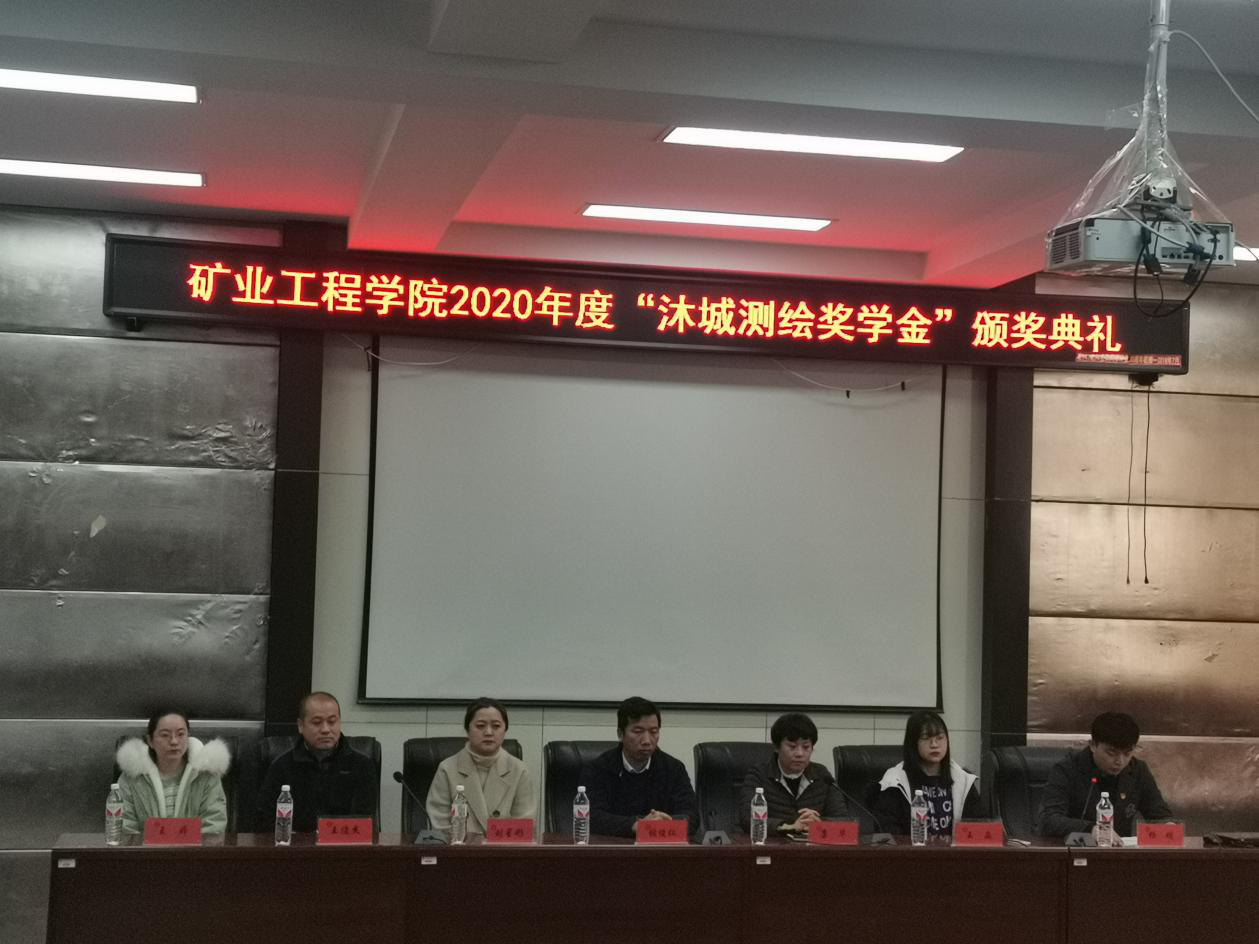 11月11日上午,矿业工程学院在系办二楼会议室举行2020年度“沐城测绘奖学金”的颁奖仪式。沐城测绘(北京)有限公司副总经理张俊仁,人事部主任王婷,市场部专员王淼与学院副院长康华,测绘系主任王俊杰,学工办主任刘星彤共同参加会议。颁奖典礼由辅导员杨明主持。