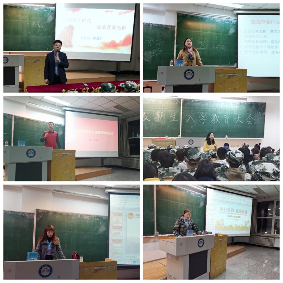 学院党委书记陈连军为新生做了题为“感恩伟大时代,绽放青春光彩”的讲座,他激励同学们要树立崇高理想信念,要勇于承担自己的历史使命和时代责任,争做有理想的时代新人。学工办主任张利南对新生进行了入党启蒙教育,帮助新生认识党、了解入党程序,端正入党动机。辅导员韩雪老师为新生做了题为“普团学知识,扬青春之帆”的精彩讲座,激励新生把握时代特点,坚定理想信念,争做合格团员。