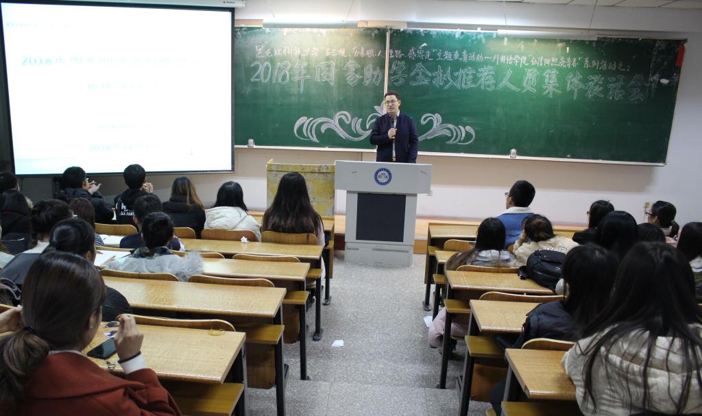 11月7日晚,外国语学院在科厦W205召开了“2018年国家助学金拟推荐人员集体谈话会”。外国语学院通过2018年国家助学金申请的101位学生参加了此次会议。