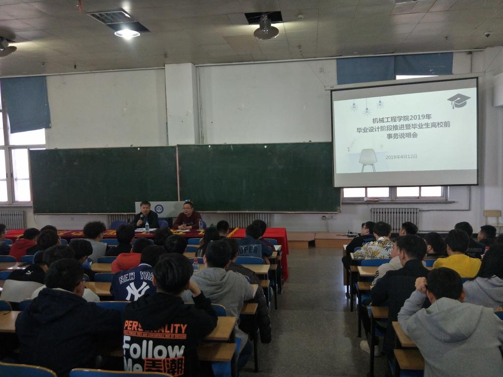 4月12日下午,机械学院在教学主楼EN0401召开了2019年毕业设计阶段推进暨毕业生离校前事务说明会。副院长刘元林、学工办主任毕强、辅导员郝鑫及全体毕业生参加了会议,会议由毕强主持。
