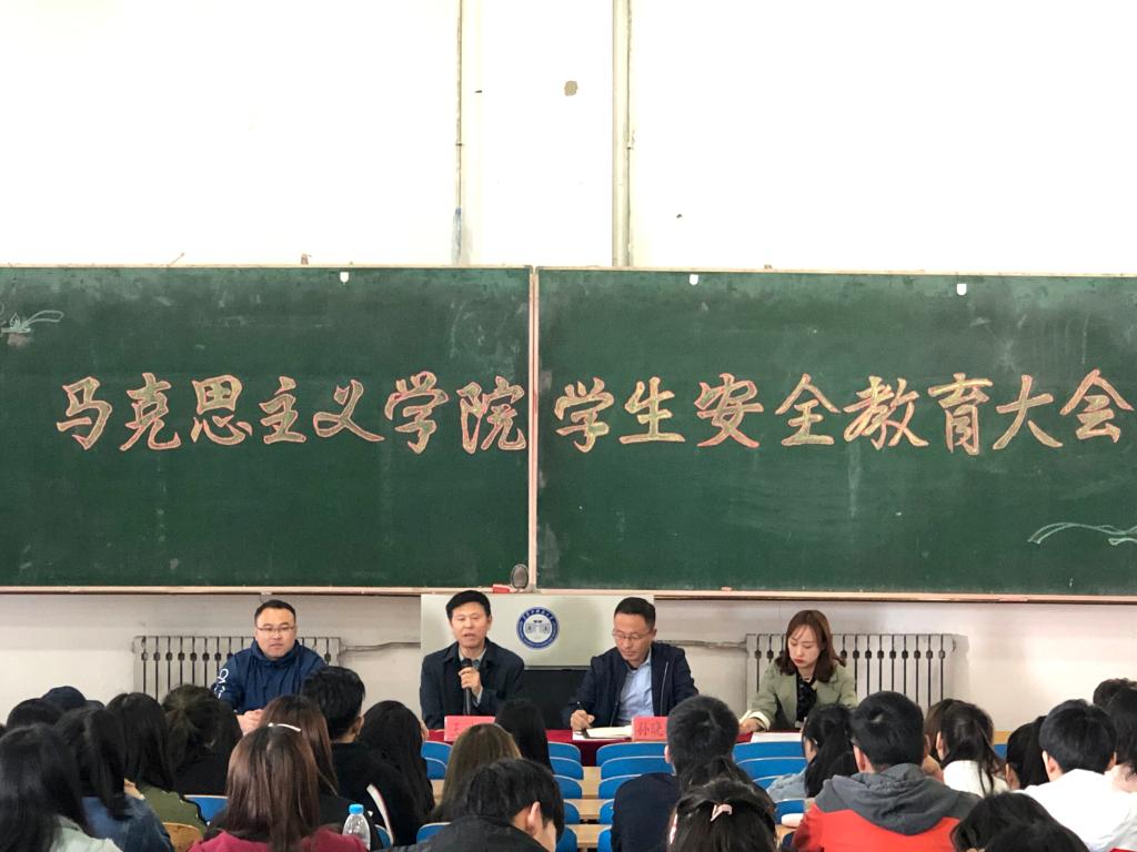 为切实增强学生安全守纪意识,强化行为规范养成,全面加强学生安全教育,5月5日,马克思主义学院在教学主楼EN0401组织召开了学生安全教育大会。马克思主义学院院长王洪秋出席会议,学工办主任孙晓辉、辅导员韩永辉及全院学生参加会议,会议由辅导员高阳主持。