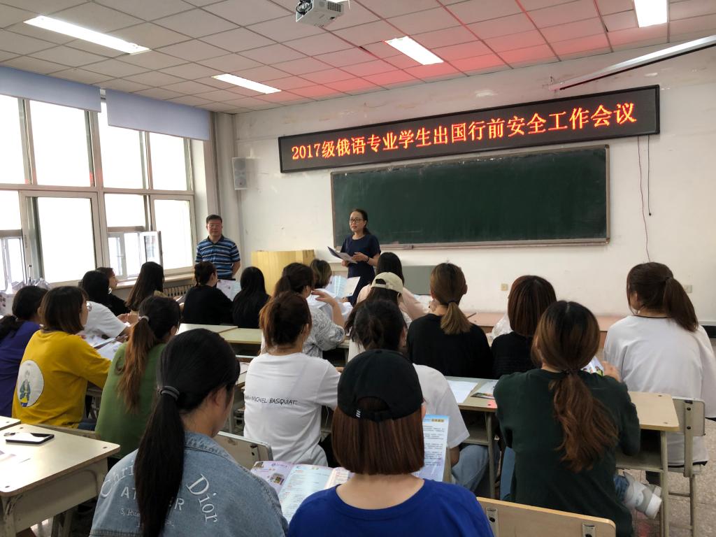 7月2日,国际交流合作处在科技大厦高层0617室为国际教育学院2017级俄语专业学生名召开了出国行前安全工作会议,会议由国际交流合作处处长母丽华主持。