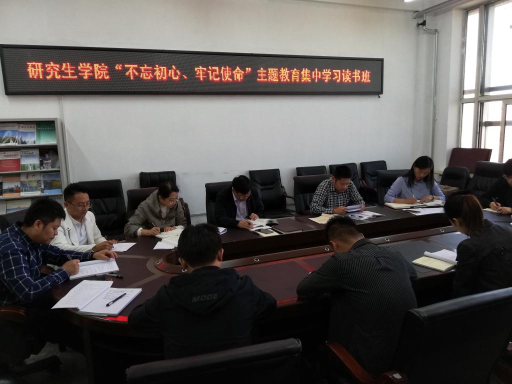9月20日,在研究生学院会议室,学院领导班子集中自学了《乐鱼网站_乐鱼(中国)“不忘初心、牢记使命”主题教育学习材料汇编》和《黑龙江省“不忘初心、牢记使命”主题教育学习参考资料》等。