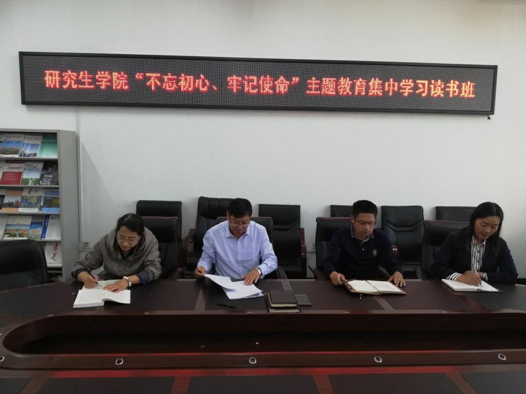 按照学校“不忘初心、牢记使命”实施方案的要求,研究生学院以集中自学和读书班的形式,分四次完成“不忘初心、牢记使命”主题教育集中学习。