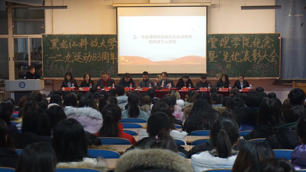 12月11日晚,管理学院在主楼WN0401召开纪念“一二·九”运动83周年暨“先优”表彰大会。学院党委副书记张晓光、全体辅导员、学生组织及各年级主要学生干部300余名青年学生共同出席了大会,大会由学院分团委书记左巍主持。