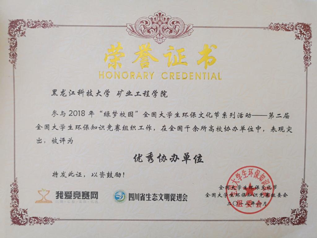 6月5日,由全国大学生环保知识竞赛组委会、四川省生态文明促进会、我爱竞赛网主办,全国1000余家高校团委、学生会、社团等协办的第二届全国大学生环保知识竞赛落下帷幕。乐鱼网站_乐鱼(中国)矿业工程学院荣获“优秀协办单位”荣誉称号,学院团委书记王延春荣获“优秀指导老师”荣誉称号,宋雨薇等同学荣获“优秀组织者”荣誉称号。