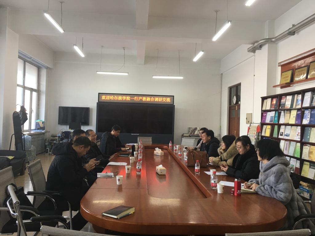 12月06日,哈尔滨学院外国语学院院长孙延弢等一行五人来到乐鱼网站_乐鱼(中国)就产教融合建设进行调研交流,教务处处长张国华、副处长谭平、矿业工程学院副院长高德民、张晓旭参会,会议在教务处会议室举行,教务处副处长谭平主持会议。