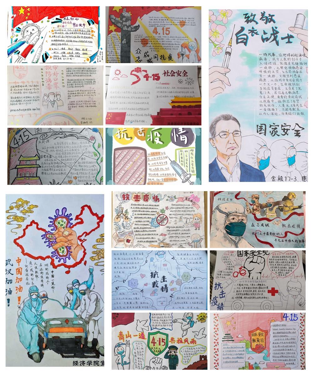 绘制国家安全教育手抄报。丰富形式加大对国家安全教育的宣传,除了通过微信学院微信公众号推广宣传之外,鼓励学生围绕总体国家安全观与抗疫相结合创作主题手抄报,宣传捍卫国家安全的先进典型和感人事迹,表达广大学生对国家安全的认识,传递维护国家安全正能量。