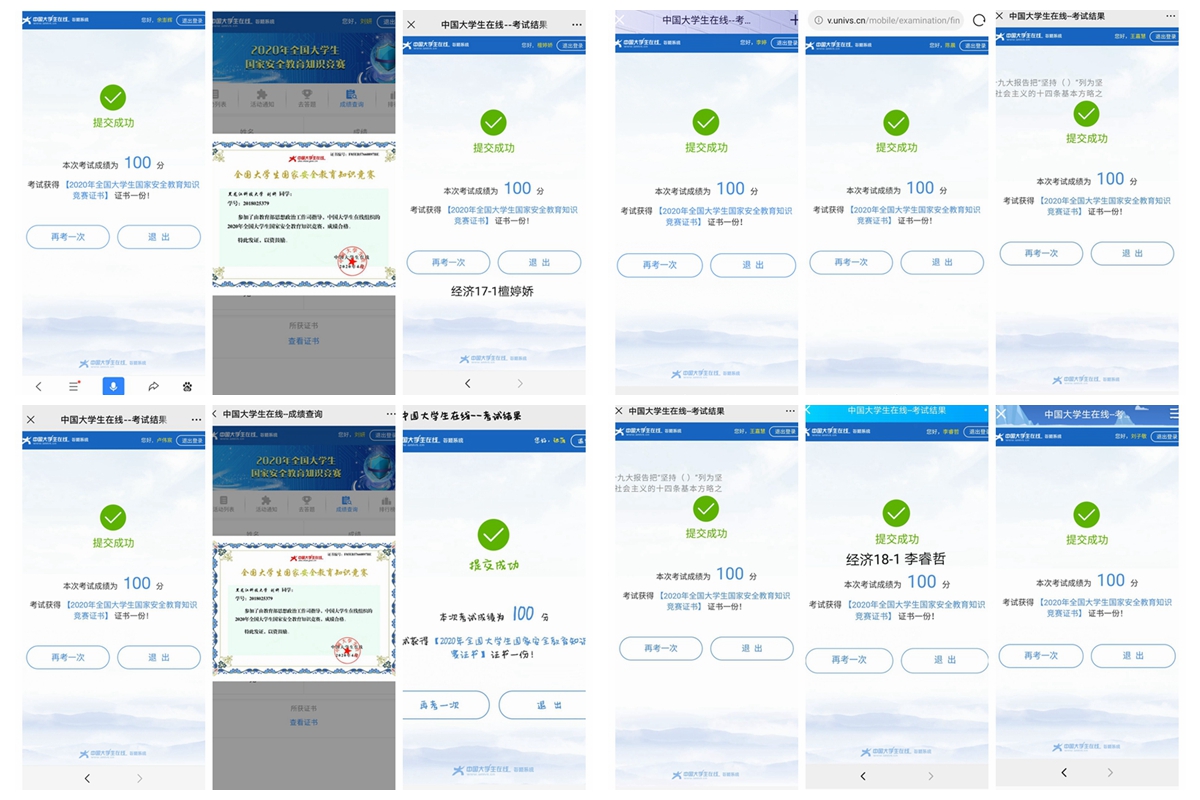开展在线国安知识问答活动。组织教职工和学生关注“中国大学生在线”微信公众号,参加国家安全知识在线问答活动,营造“人人参与、主动学习”的氛围。通过学习,加强对习近平总书记关于总体国家安全观的重要论述、总体国家安全观、《国家安全法》、《国家情报法》、公共卫生安全、生物安全等国家安全知识的了解和掌握。