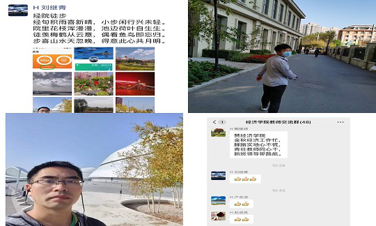本次“迎中秋、庆国庆、云端健康行”徒步活动于9月25-9月29日期间开展,以微信步数挑战赛的形式进行比拼。自活动开始,我院教师积极踊跃参加,利用课余时间、饭后时间和周末休闲时间全身心投入到本次比赛活动中,校园操场、小区公园、松花江畔、太阳岛内、哈尔滨大剧院旁......尽现学院职工身影。同时,教职工们在微信群互相交流,分享徒步的喜闻乐见,并自创打油诗助兴,气氛热烈。经过5天的角逐。最终,男子组郑伟东老师以日均33000步夺得冠军;女子组马兰老师以日均17000步夺得女子组冠军;鞠耀绩老师以日均28000步获最佳人气奖,金融队以总计433419步获得优秀组织奖。