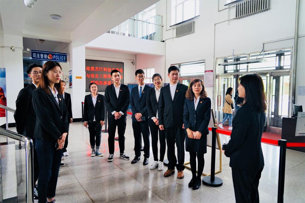 5月16日电信学院党员走进了呼兰区人民法院,参观了安检大厅、诉讼服务中心、扫黑除恶专项斗争工作展览室、羁押室、刑事审判庭、党风廉政建设长廊等;通过法院工作人员的讲解介绍,同学们了解了法院司法为民的具体制度和“努力让老百姓在全省法院打官司不求人”的庄严承诺及推出“打官司不求人”的二十项举措。