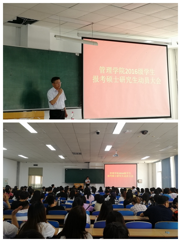 为了科学地指导学生考研报考,促使2020届毕业生考研顺利,清晰考研方向,7月5日,管理学院在主楼WN0301召开了2016级学生报考硕士研究生动员大会。会议邀请到管理学院副院长陈培友为考研同学做考研报考指南和政策分析指导,2016级200余名考研意向学生参加了大会,会议由管理学院学生工作办公室副主任李宁主持。