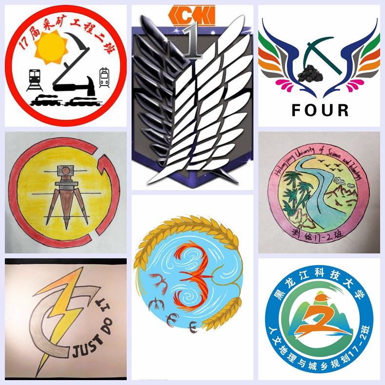 各班级结合班级特点和专业特色,综合利用线条、图片、字母、颜色等多种原素进行搭配组合,设计出了一个个独具特色、别有寓意的班徽。这些班徽表达了同学对班级的热爱与拥护,对所学专业的深刻认识与理解,对班级发展的美好憧憬。