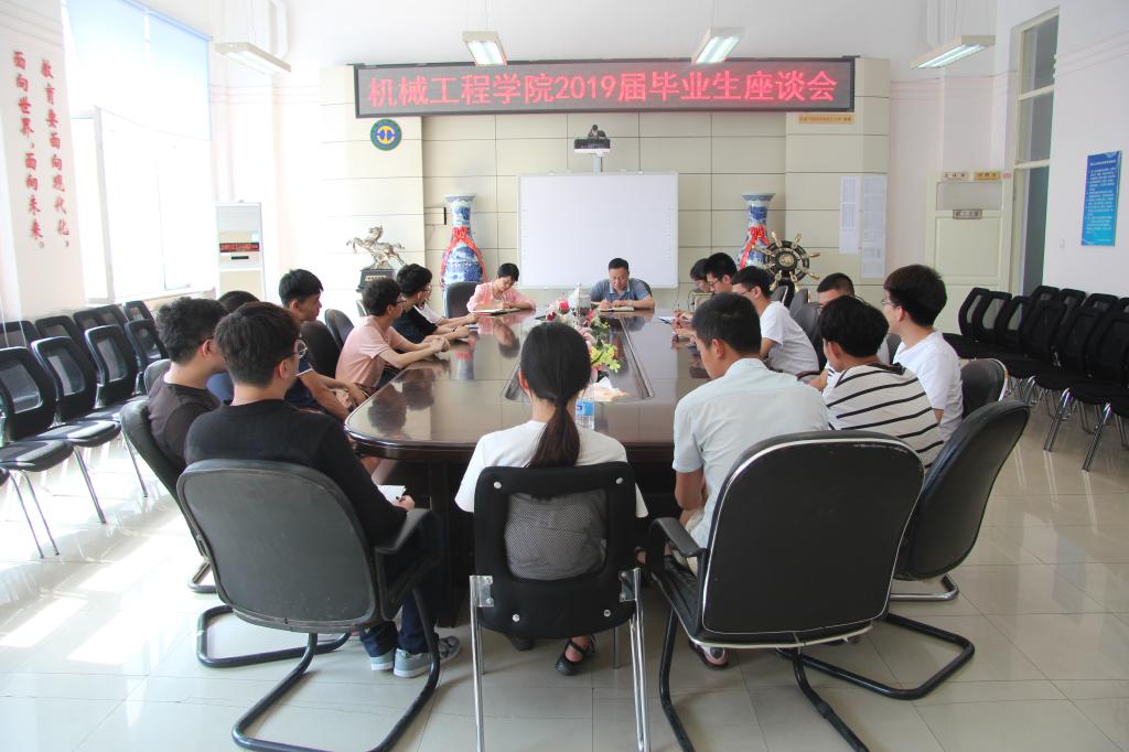 【机械学院】6月24日下午,机械学院2019届毕业生座谈会在学院会议室召开。学院党委书记石善革、辅导员谭美微和来自不同专业不同层次的14名毕业生代表参加了本次座谈会。座谈会由学院团委书记张岩主持。