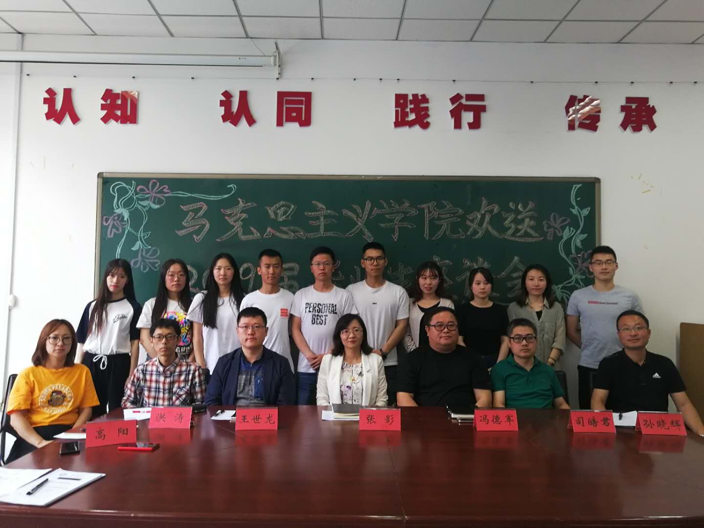 【马克思主义学院】6月17日,马克思主义学院在会议室召开2019届毕业生座谈会。学院党总支书记张影、副院长冯德军、思想政治教育系主任王世龙、思想政治教育系教师司皓君、洪涛、辅导员高阳出席会议,10名2019届优秀毕业生代表参加会议。会议由学工办主任孙晓辉主持。